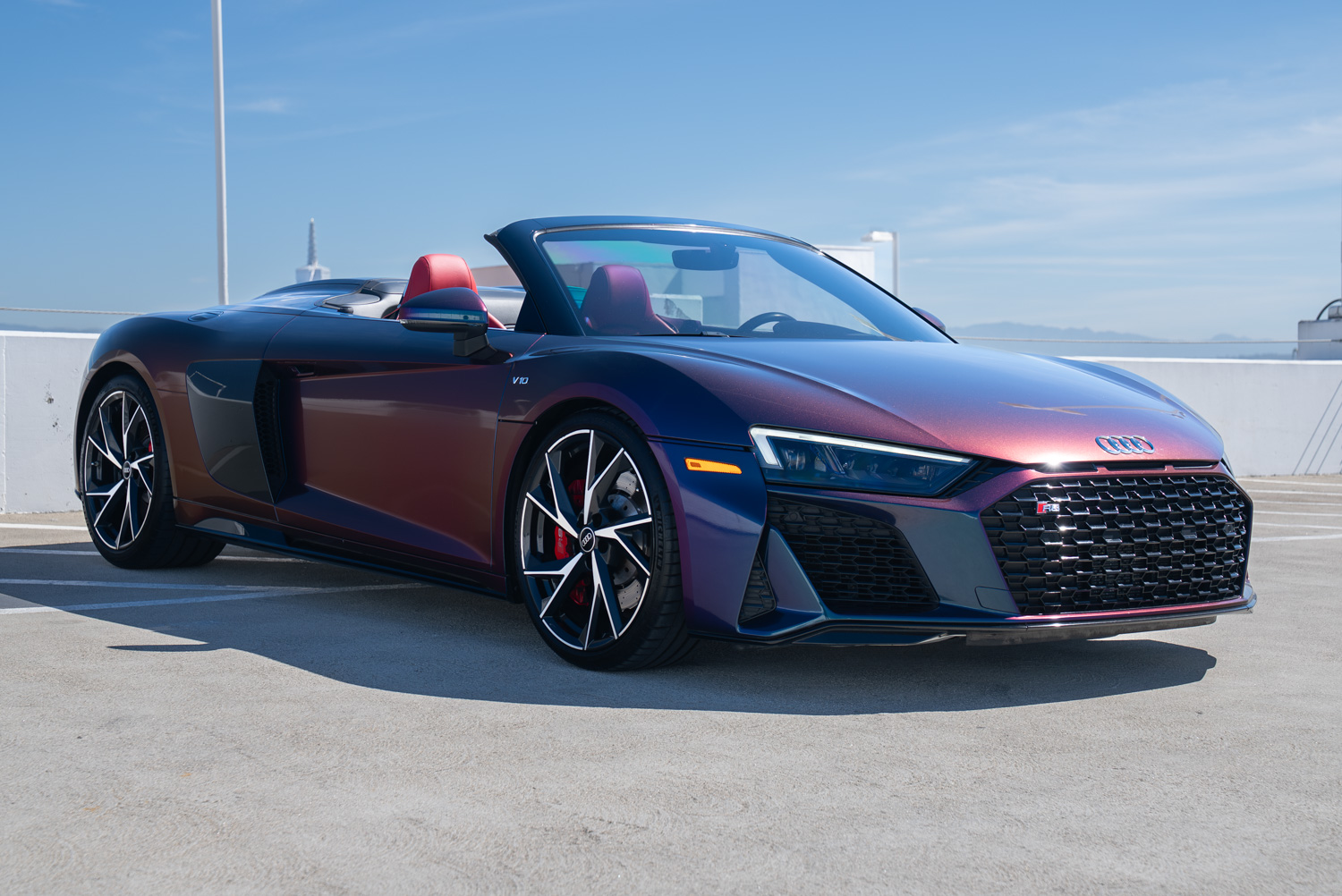 With its mid-engine layout, sharp handling, and a lightning-fast 7-speed dual-clutch transmission, the R8 Spyder offers an engaging and visceral driving experience. The retractable soft top can open in about 20 seconds, allowing drivers to fully enjoy the signature V10 sound.
